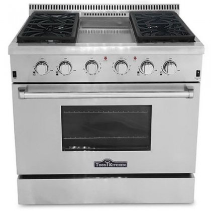 There are many good reviews about this ice maker. Most customers feel happy with the quality of this portable ice maker. There are three main ice cube sizes that are available, including small, medium, and also large. .Thor Kitchen HRG3609U 36" Freestanding Gas Range Convection Oven in Stainless Steel will help your job easier dexThor Kitchen presents this hot new gas range designed to help you create meals like a professional chef. For those with discriminating tastes, this 5.2 cubic foot oven has the space to get it all done and the power to get it done fast. The freestanding gas range features 4 high powered gas burners and a infrared center griddle, which allow you to cook from a high heat for boiling, frying or searing to a low simmer for the most delicate sauces. The removable back-splash gives it the versatility to be used as a freestanding or slide-in range. With its classic stainless steel body and modern black finishes this modern appliance is designed to perform as well as it looks.