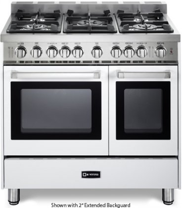 Verona VEFSGG365NDW 36" Pro-Style Gas Range with 5 Sealed Burners 2 Turbo-Electric Convection Ovens Manual Clean Infrared Broiler Bell Timer and Storage Drawer in