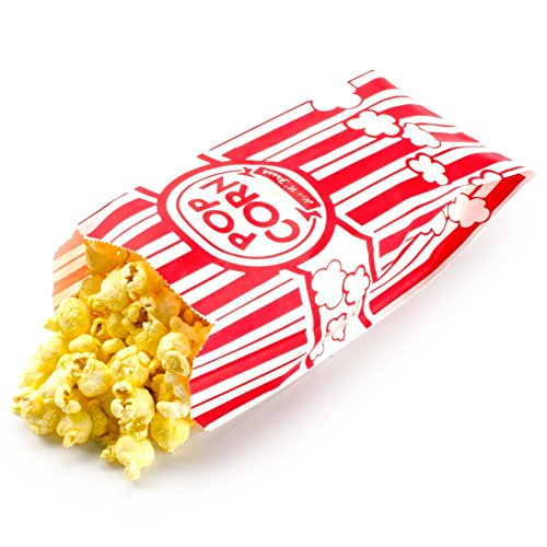 ChefLand 100-pack Paper Popcorn Bags - 2 Ounce - Attractive Design for Your Hot Fresh Popcorn - with 100 Little Salt Packets